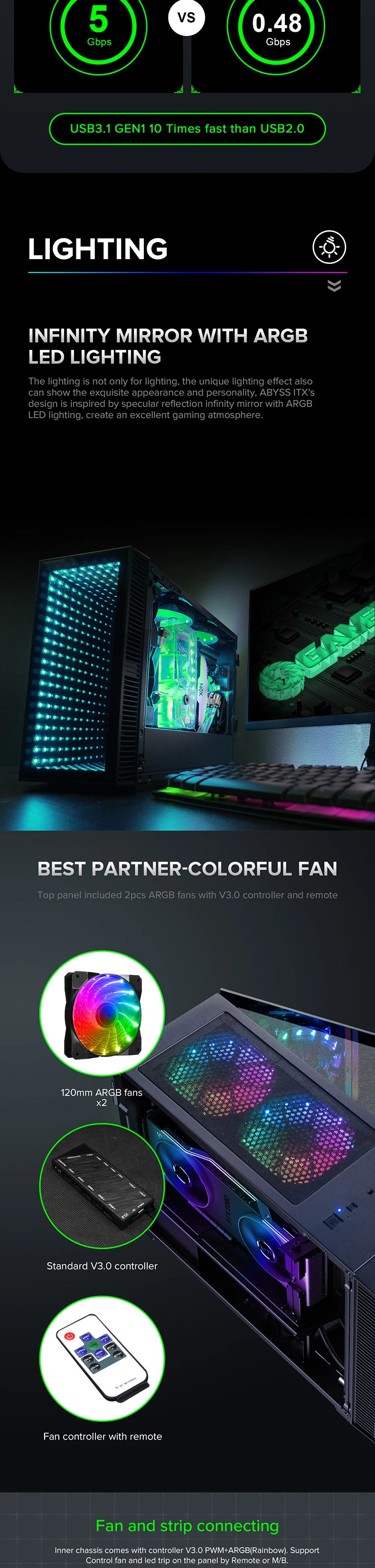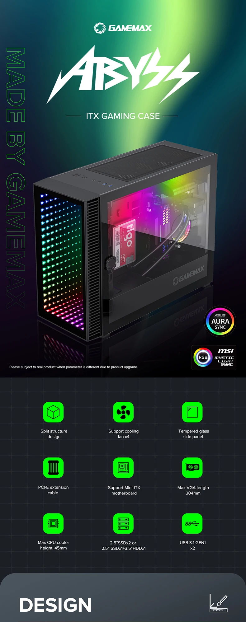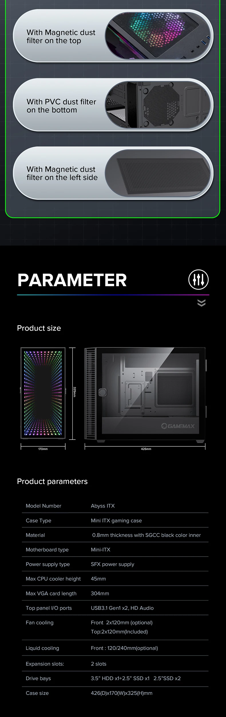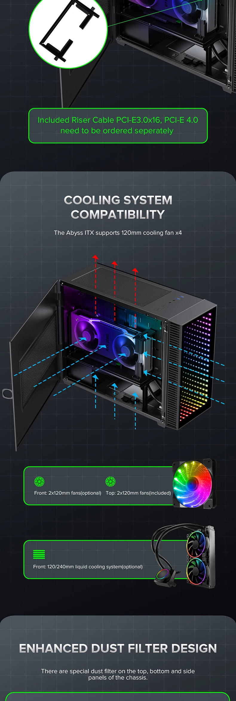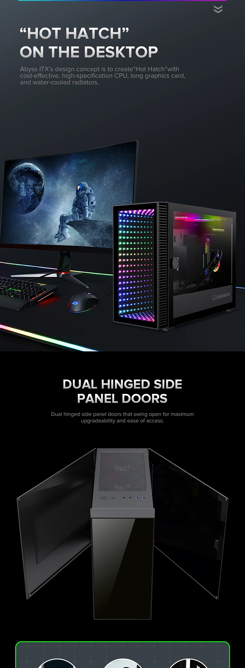 The Abyss ITX has it all in a 0.7 cubic foot size and a mesmerizing infinity front mirror front panel. We've combined style,