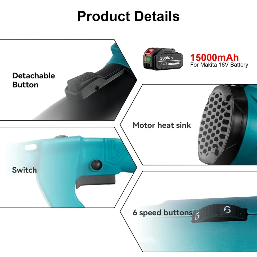 2000W 6-Speed Electric Leaf Blower – Makita 18V Compatible